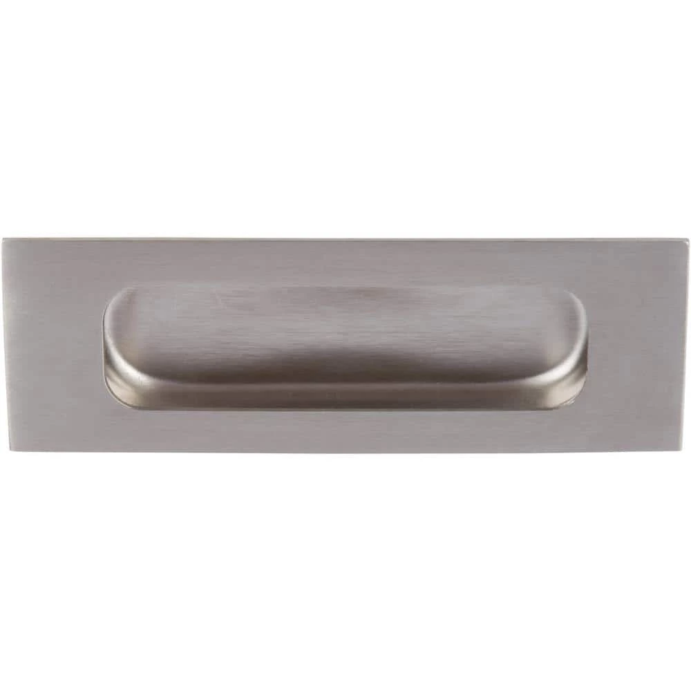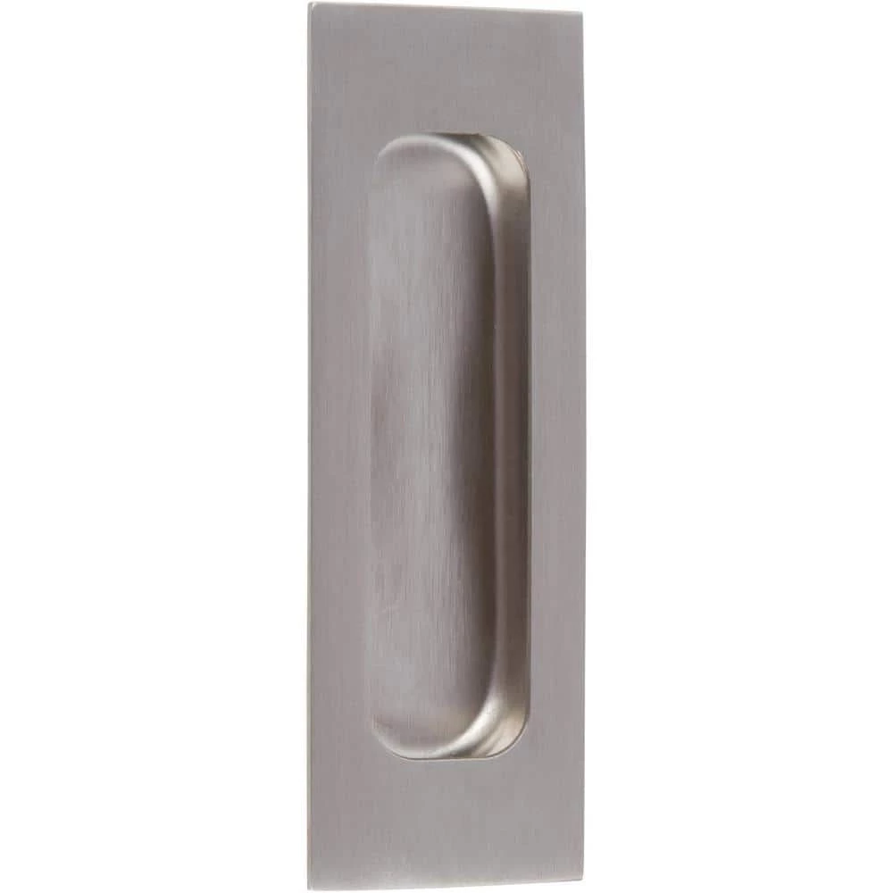 Piece together your own unique barn door system with this 4-3/4 in. flush barn door finger pull. Durable with a powder coat brushed steel finish. Compliments a wide range of interior decor. Allows by-pass doors to pass each other.
