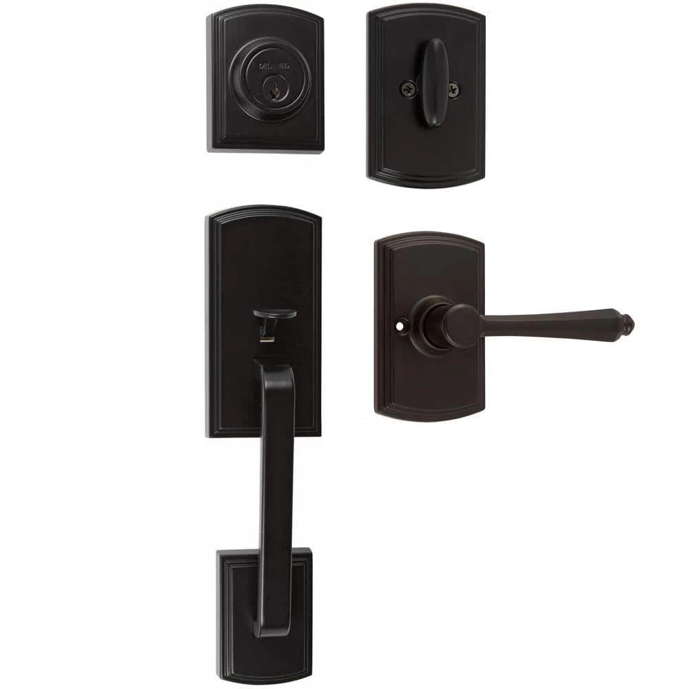The Delaney Designer Series Italian Collection was inspired by the simple elegance of Venice and the timeless appearance found in Tuscany. The Visconti handle set with exquisite straight lines and enlarged back plate adds style and value to any home. The black finish complements a wide selection of interior design options. The inside lower trim is a Florini lever for either a left hand (LH) or right hand (RH) door.