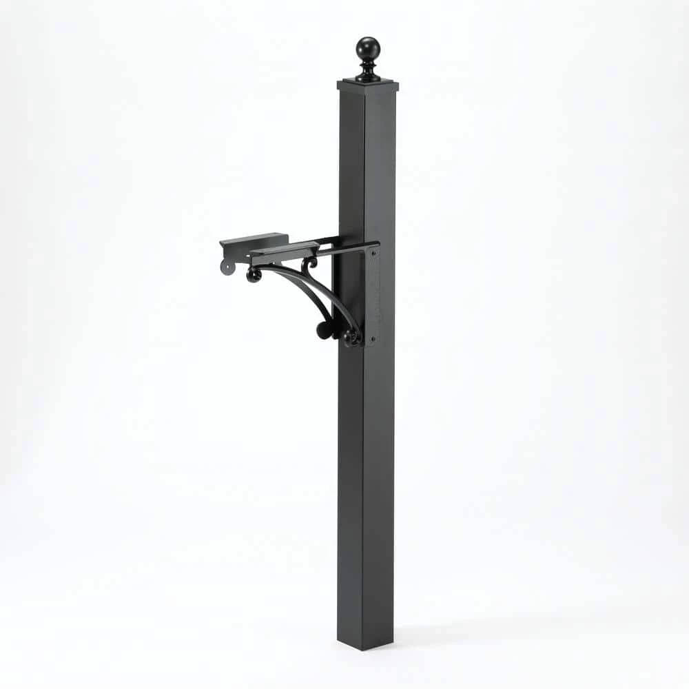 Complete your curbside presentation with a matching Whitehall Deluxe Post. The Deluxe Posts finial and scrolls add distinctive details. The Whitehall post is made of durable extruded aluminum and finished with powder coat paint to withstand the harshest elements. The post will not rust all hardware and detailed assembly instructions are included for easy installation. A 4 ft. long x 4 in. x 4 in. wood post is required for mounting. Wood post sold separately. The Whitehall Deluxe Post only accommodates an optional matching newspaper box. Newspaper box sold separately.