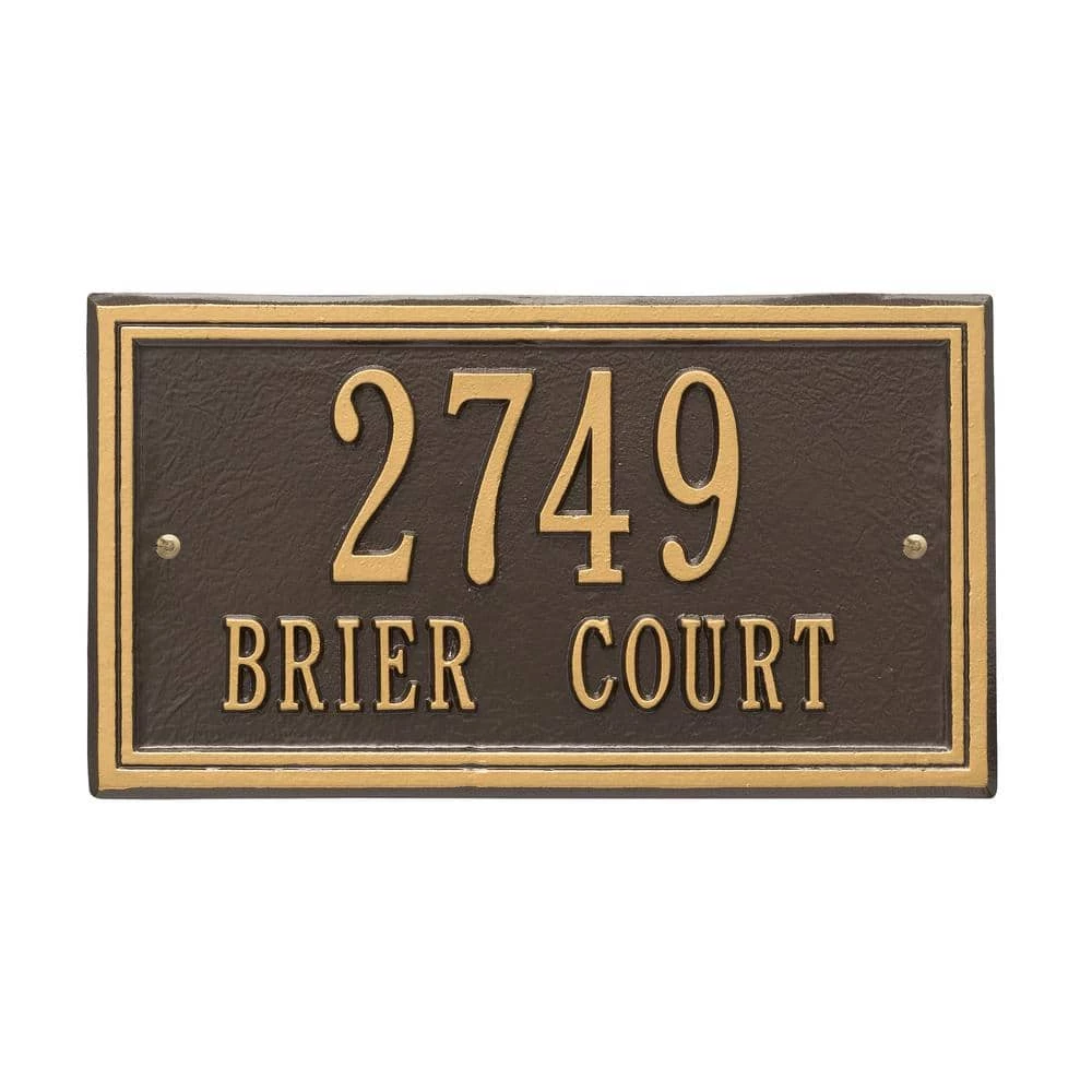 The Whitehall Products Double Line Address Plaque has a classic frame design that will display your address in style. The address plaque is hand crafted from rust-free cast aluminum that promises excellent quality. Enhances the appearance of your home.