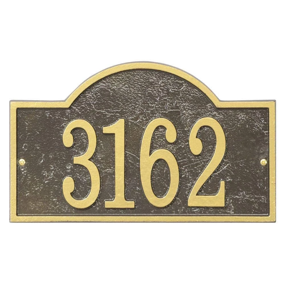 Give your entryway an affordable makeover. The arch fast and easy house numbers plaque combine popular architectural styling with large 4 in. numbers for maximum visibility. Choose from 4 different super durable all weather powder coat colors. Easy to order and ultra-fast turnaround for this distinctive cast aluminum personalized house numbers plaque.