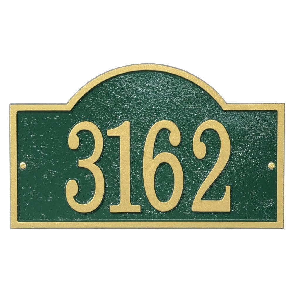 Give your entryway an affordable makeover. The arch fast and easy house numbers plaque combine popular architectural styling with large 4 in. numbers for maximum visibility. Choose from 4 different super durable all weather powder coat colors. Easy to order and ultra-fast turnaround for this distinctive cast aluminum personalized house numbers plaque.