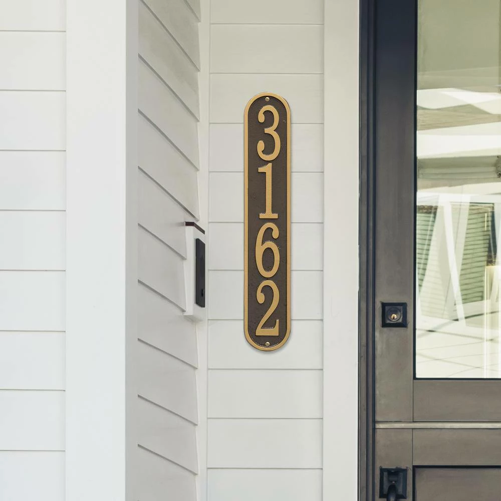 Give your entryway an affordable makeover. The arch fast and easy house numbers plaque combine popular architectural styling with large 4 in. numbers for maximum visibility. Choose from 4 different super durable all weather powder coat colors. Easy to order and ultra-fast turnaround for this distinctive cast aluminum personalized house numbers plaque.