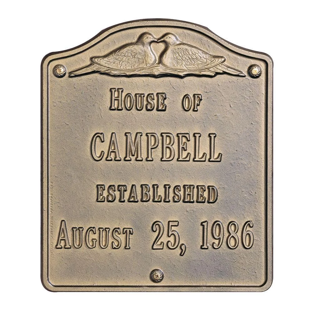 - 2 line plaque: line 1 holds up to twelve 1.25 in. characters; line 2 holds specified date